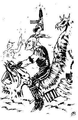 Но тут, прямо под его ногами, пробежал кто-то, схватил передатчик и принялся удирать. В изумлении пилот отпрыгнул в сторону, выхватывая сразу оба бластера, подвешенные на поясе. Но этот кто-то, укравший передатчик, нырнул в песок и исчез.