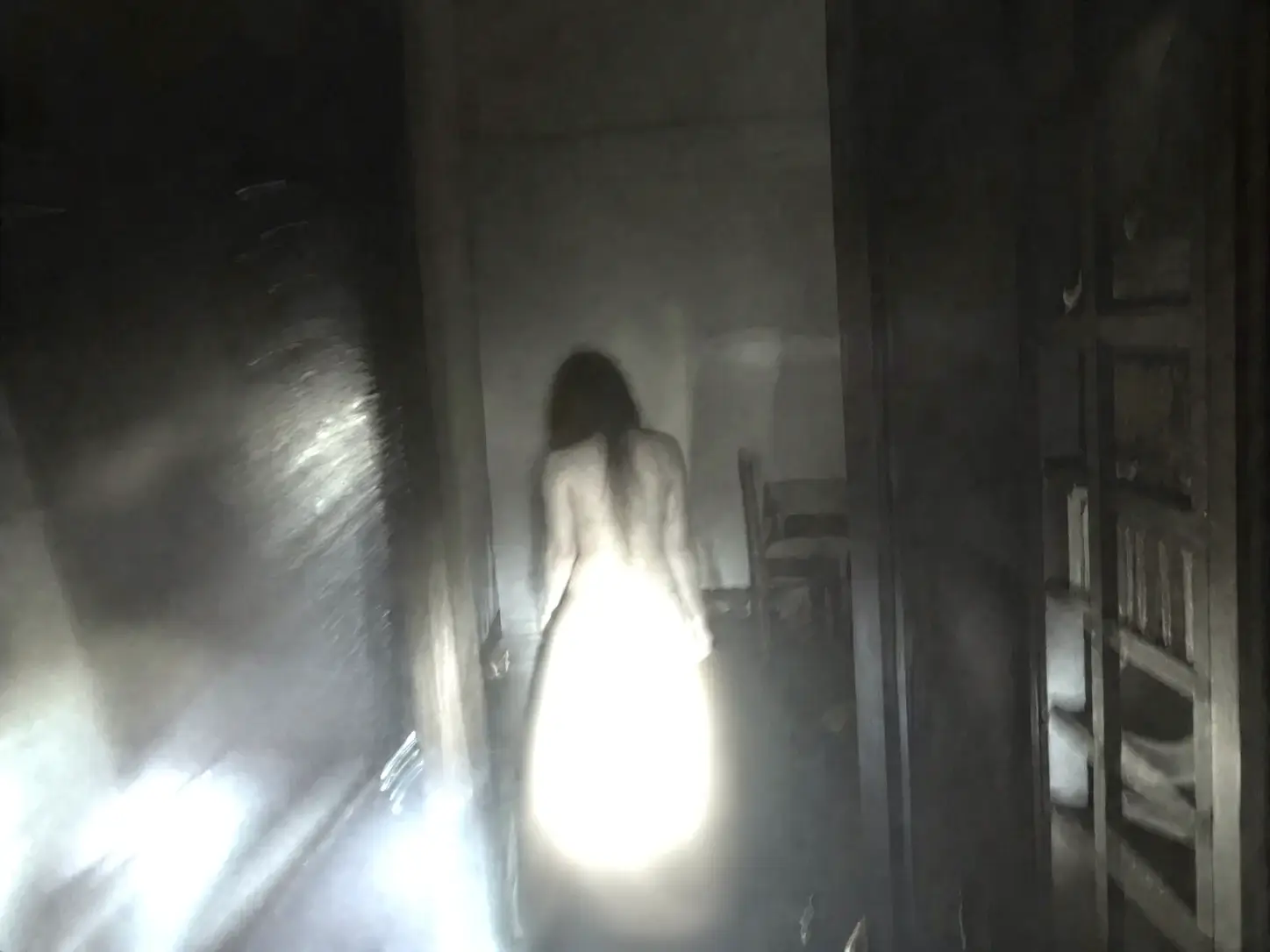 И она появилась. Пространство на кухне задрожало, и она возникла внезапно. Она стояла посреди кухни абсолютно нагой. Густые рыжие волосы рассыпались по её бледным плечам. Это была обычная, очень красивая девушка. Взгляд против моей воли скользнул по её фигуре: небольшая, аккуратная грудь с сосками, которые чуть напряглись от холодного воздуха, плоский живот и плавный изгиб бедер. Её кожа была чистой и ровной. Она выглядела настолько настоящей, живой и желанной, что внизу живота предательски потянуло. Несмотря на голод и дикий страх, я почувствовал внезапное возбуждение.